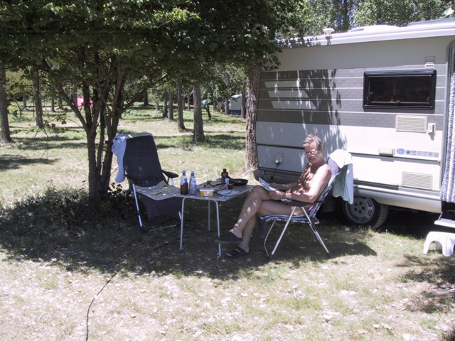 | Weer een vroege start voor de volgende etappe, Castelane. Inmiddels is het heerlijk warm geworden en we stellen de plannen bij om toch naar een naturistencamping op zoek te gaan om uit de kleren te kunnen. Over Domaine d’Enriou wordt levendig geschreven in het laatste naturisten blad en ligt in het Verdon gebied, ons (eind)doel dus…even TomTom influisteren en op weg…Gevonden. We denken een nachtje te blijven, het worden er 7! |