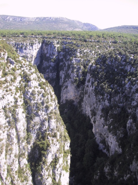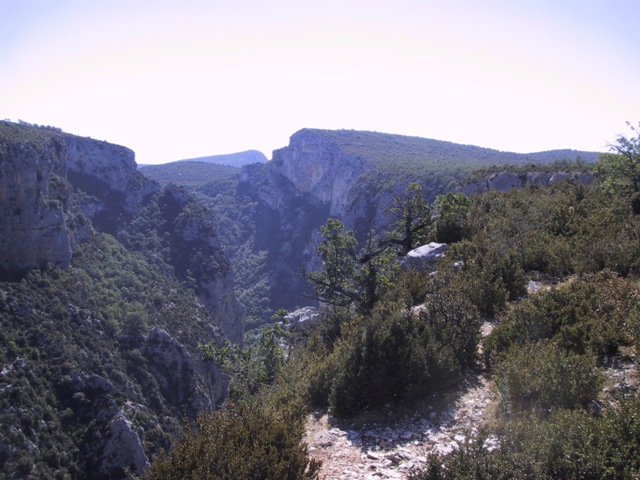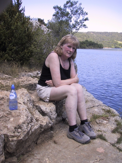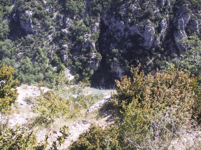 We bezoeken er dorpjes en maken 2 mooie uitgezette wandelingen langs de Verdon van ongeveer 6 km langs smalle rotspaadjes, dat doen we voor 12:00 uur vanwege de hitte die flink oploopt gedurende de dag. Langere wandelingen durven we niet aan omdat Roy z’n wandelschoenen sneuvelen bij de eerste stappen, dan maar op schoenen waar hij het beste op loopt, de ‘zondagse’.